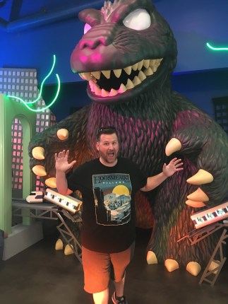 There is a Gotham/DC area with a Batcave and a Batmobile photo op! There is also an anime/miscellaneous area with a big Pop Godzilla and a little monorail train with Pop figures inside that he is attacking. They really thought of everything, and there were little Easter eggs everywhere that I really loved. There is also a Disney area in the center of the store with Maleficent’s castle and a drawbridge!