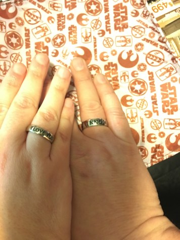 We’ve got a Death Star charger in our car and a Millennium Falcon license plate frame and a hanging R2-D2 in the car as well as a couple Star Wars windshield covers. You really can’t go anywhere in our house without seeing it; it’s just so out of hand!