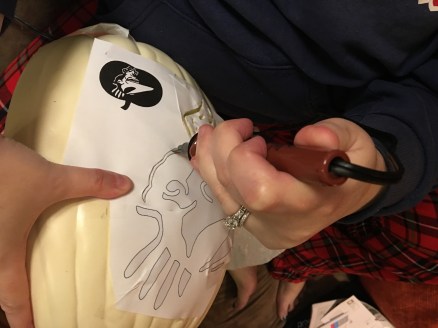 When it comes to transferring a design onto the pumpkin, Stephanie said she “doesn’t bother with the normal method of poking holes to transfer like the Pumpkin Masters kits suggest.