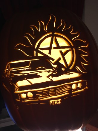 A “Supernatural”-themed pumpkin carved by Stephanie Patterson.