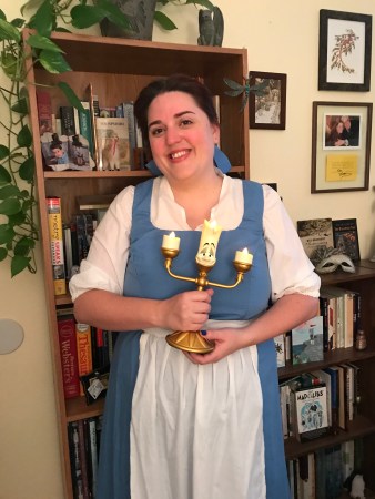 By day, Fawn Kemble went to work as “provincial” Belle, of “Beauty and the Beast” fame, complete with a light-up Lumiere prop from Disneyland.