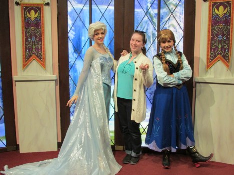 Sara Parrott bounds with Elsa and Anna of “Frozen.”