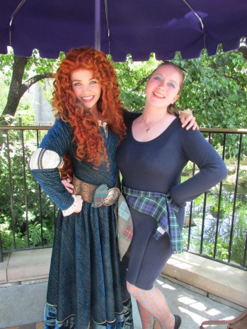 Sara Parrott poses with DisneyBounding inspiration Merida at Disneyland.