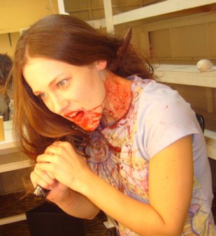 This was a fun part. “Affliction” is about a mentally unbalanced girl that acquires superpowers so it’s got emotional torment, an intriguing red costume, and I got to kill instead of be killed (a few of my past death scenarios include a samurai sword through the neck and a vampire pity killing), so it was a bit of a dream to play out! But I totally didn’t see it that way when I read the script.