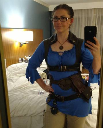 I used to! I’ve discovered that writing and sewing take up the same portion of my brain, so it’s either writing, or sewing. Not both at the same time. Back in the day, I would make our renaissance faire costumes, and then I also made our anime cosplays. Steampunk … we just buy leather goods. Lots of leather. And metal.