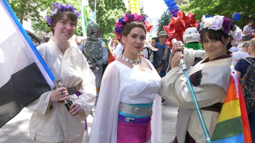 As a queer woman, Ophelian was drawn to documentary film because she didn’t see herself represented on screen. It’s no surprise then that representation is a high priority for her, both in front of and behind the camera. “Looking for Leia” places an emphasis on the stories of a culturally diverse group of women, while promoting women in film behind the scenes as well.