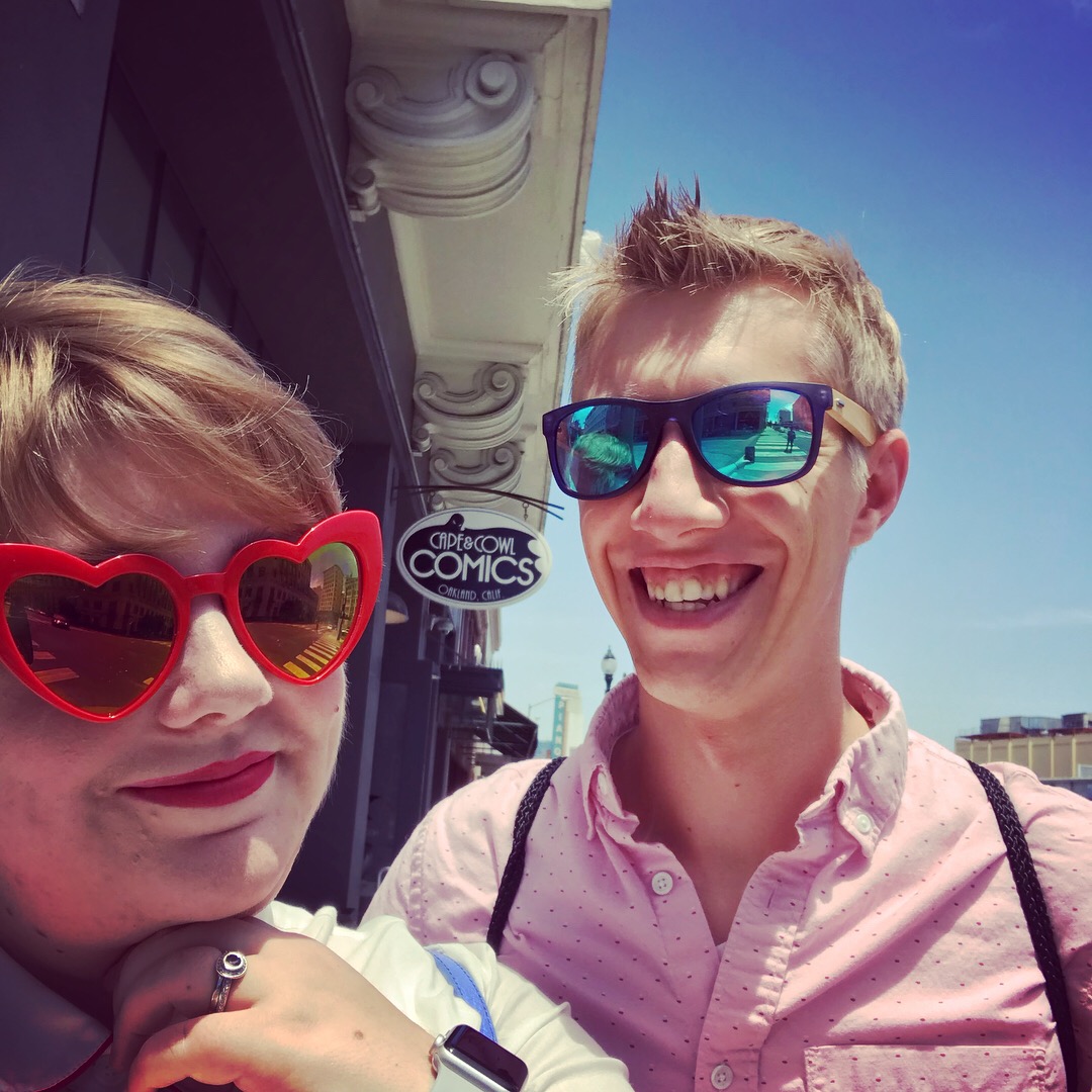 Miranda and husband comic book store