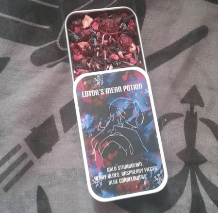 So, first it starts with wanting to represent a certain fandom with tea, whether it may be just because I like it, or because there’s a convention themed around that I want to get into. So, then I’ll try to analyze the character to see if something makes sense with them, i.e. spearmint for Slytherin, blueberry for the 10th Doctor, jasmine for a rogue.