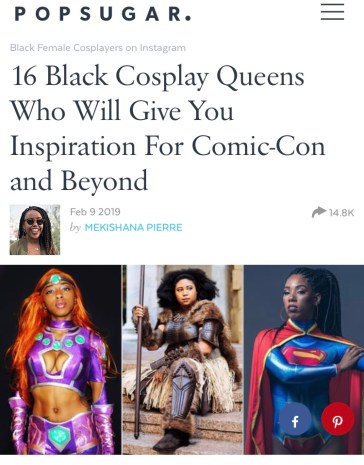 How does it feel to be included in PopSugar’s list of 16 Black Cosplay Queens?