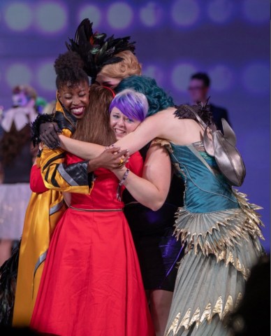 Kristi receives hugs after being announced as a winner at the 2018 Her Universe Fashion Show. Photo: Frank Guthrie.