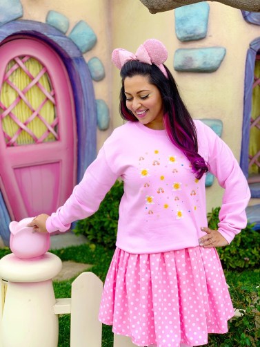 I love doing #ColorfulDisneyDay! It’s something that my friends and I came up with when we were headed to the parks when “Purple Potion” was the craze. We thought it would be fun to dress in head-to-toe purple and eat all the purple treats at the parks. Little did we know that we were a few days late for all the purple treats but we still had a blast and decided that whenever we three girls go to the parks, it will be in particular color. Our next look will be in yellow!