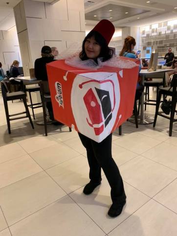 I loved the idea of creating something myself. I made some creative costumes, like different versions of the LEGO Doctor from Doctor Who. At this past Gallifrey One (Doctor Who convention), I made myself into a Kerblam! package.