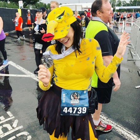 I think at this point it’s me challenging myself to find the most obscure/funny thing to make an outfit out of but still make it functional for running. I like the weirder stuff in Star Wars so it’s fun for me to pick things that are pretty out there. I just bought my races for next year and I’m already brainstorming. It’s looking like a possible overall “The Last Jedi” theme.