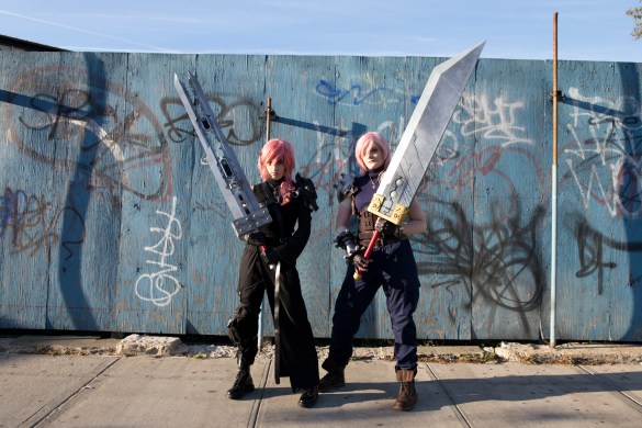Sarah C. Awad, left, and Dhemerae Ford cosplay as Lightning/Cloud Strife from Final Fantasy VII.