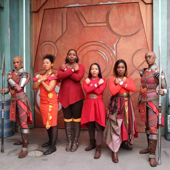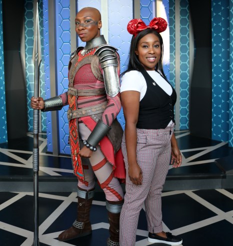 Audrey Lee Young, right, with one of the Dora Milaje at Disney’s California Adventure.