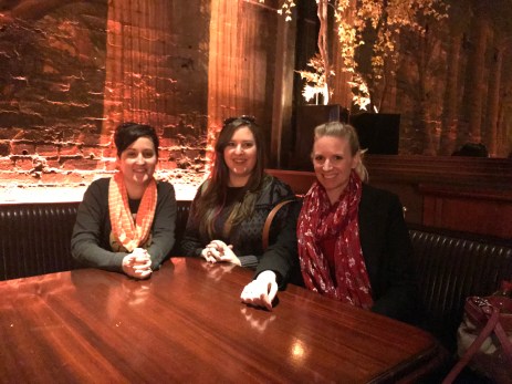 Erin, center, and fellow book lovers Lavender Vroman and Christy Rooney, sitting in the Bradbury booth at Clifton’s in Los Angeles.