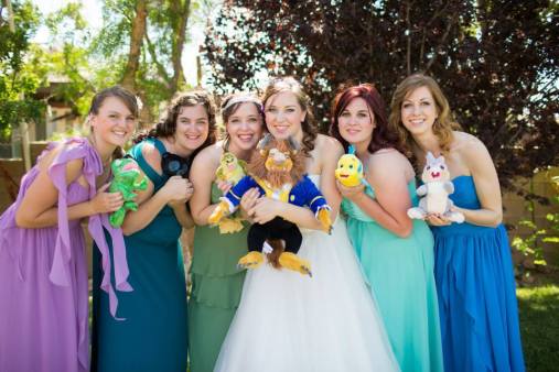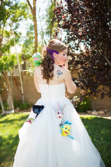 It was the best day ever, obviously. I got to wear a Disney Alfred Angelo ballgown dress covered in sparkles. Surprisingly enough, I wore a dress styled after Cinderella. The Belle-style dresses just looked weird on me. All my bridesmaids were dressed like other princesses and their bouquets were made specially to match their princess.